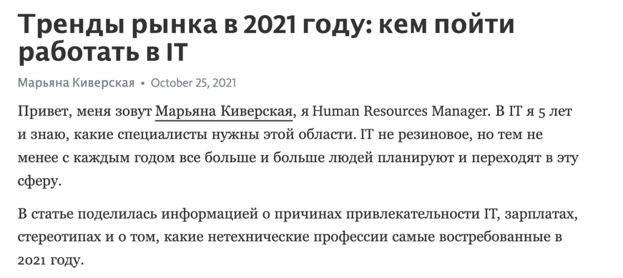 Тренды рынка на конец 2021 году: кем пойти работать в IT. Ссылка.