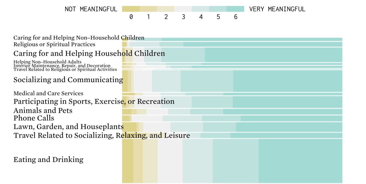 Американские исследователи попросили группу людей записывать свои активности в течение дня. А по завершению оценить значимость активностей по шкале от 0 (незначительно) до 6 (очень значимо).